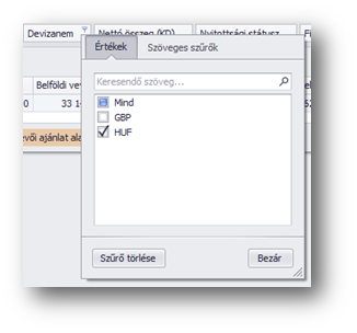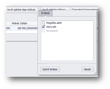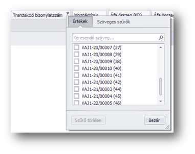 A konkrét mező jobb felső sarkában lévő szűrőre kattintva a találati elemekre szűrhetünk.