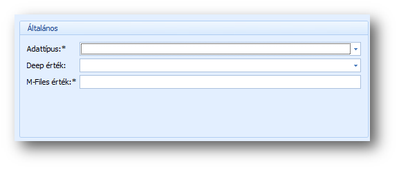 | M-Files érték: | A deep érték alapján kell rögzíteni, a fenti értéknek megfelelő párt, az M-Files programban (deep érték: vevő esetén, az M-Files érték is vevő lesz). |