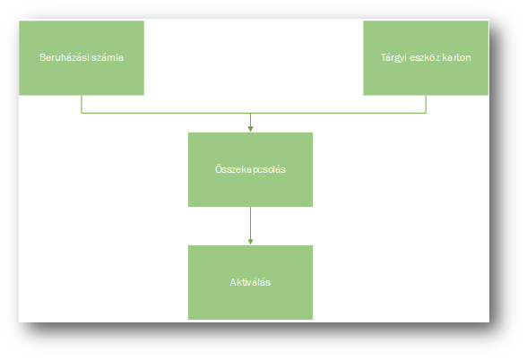A rendszerben bárhol rögzített beruházási számlára tett tranzakció megjelenik a Tárgyi eszköz modul Tárgyi eszköz beruházási tranzakció menüben. Első lépésként mindig létre kell hozni az eszköz kartonját, majd a beruházást össze kell kötni az adott eszköz kartonnal és utána lehet aktiválni a beruházást.