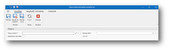 | Új: | Amennyiben a Rendszerbeállításban a Tárgyi eszköz beruházási tranzakciót lehet-e manuálisan felvenni beállítás Hamis, akkor az ikon inaktív. Ilyenkor kézzel nem lehet beruházási tranzakciót felvinni a beruházások modulba. Ezzel lehet az analitika-főkönyv egyezőségét biztosítani. |