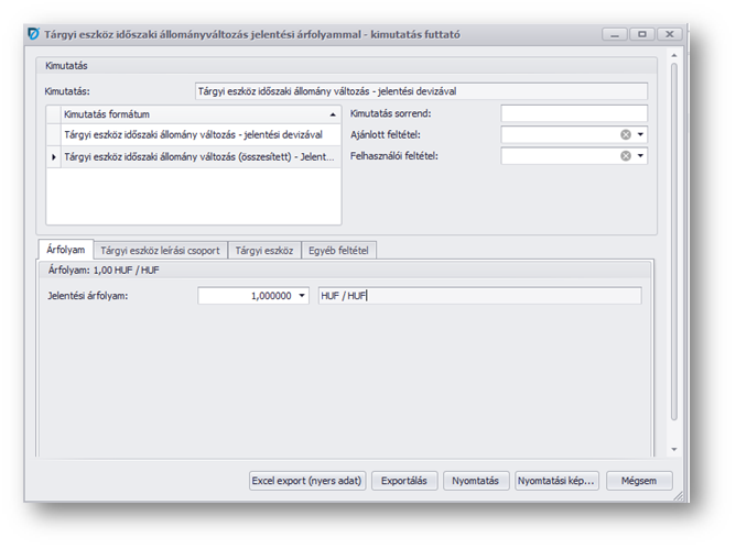 << Click to Display Table of Contents >> 01. Tárgyi eszköz időszaki állomány változás - Jelentési devizával |