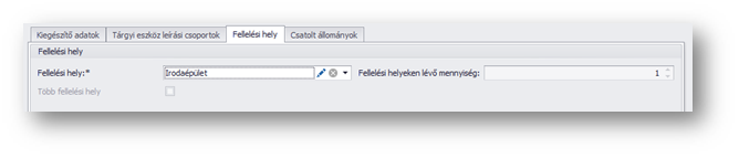 | Fellelési helyeken lévő mennyiség: | Több darabos tárgyi eszköz esetén mutatja a nem módosítható mező, hogy hány db van fellelési helyhez rendelve. |