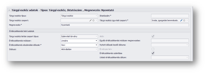 | Tárgyi eszköz leírási csoport típus: | Nem módosítható, az előző felületen kiválasztott csoportot mutatja. |