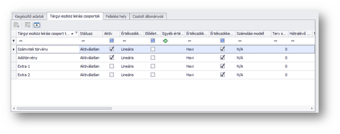 4.) Tárgyi eszköz leírási csoportok lapfül
