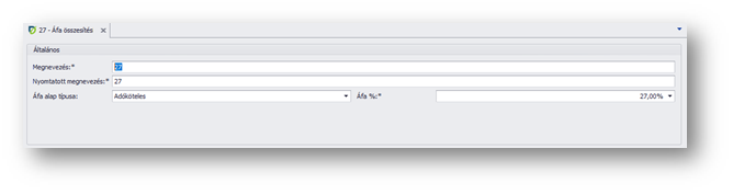 - Áfa összesítési csoport ablak -