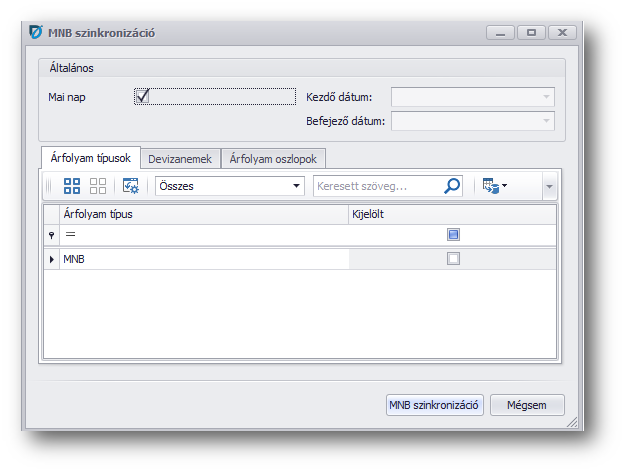 Amennyiben ütemezett feladatot állítottunk be az MNB árfolyamok letöltésére, fontos, hogy legalább egyszer manuálisan indítsuk el az árfolyam szinkronizációt!