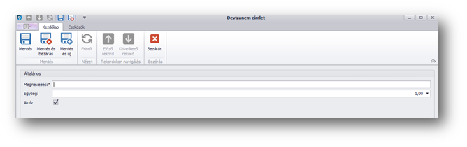 | Aktív: | I/N, pipa esetén kiválasztható a devizanem a program más funkcióiban. |