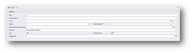 | Aktív: | Ezzel a beállítással szabályozható, hogy a projekt használható – kiválasztó – bizonylat rögzítésekor. |