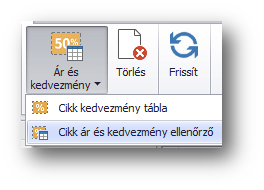 Leírását lásd: Cikk ár és kedvezmény ellenőrző.