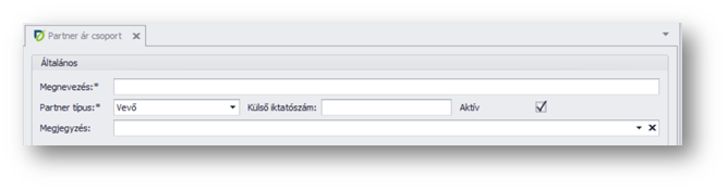 | Megnevezés: | Partner ár csoport megnevezése. |