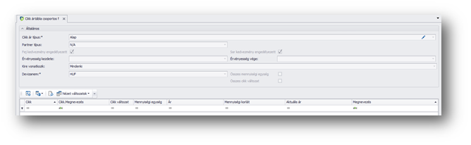 | Érvényesség vége: | Mely időpontig érvényes az ár, melyet figyel a program a bizonylat kiállításakor is. |