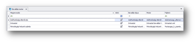 | Aktív: | A bevallási motor aktív, bevallás készítésekor kiválasztható. |