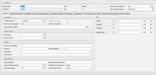 | Aktív: | A cikk aktív, bizonylat rögzítésekor kiválasztható. |