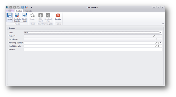 | Partner: | vevői és szállítói vonalkód esetén rögzíteni szükséges, hogy melyik partnerhez tartozik az adott vonalkód. |