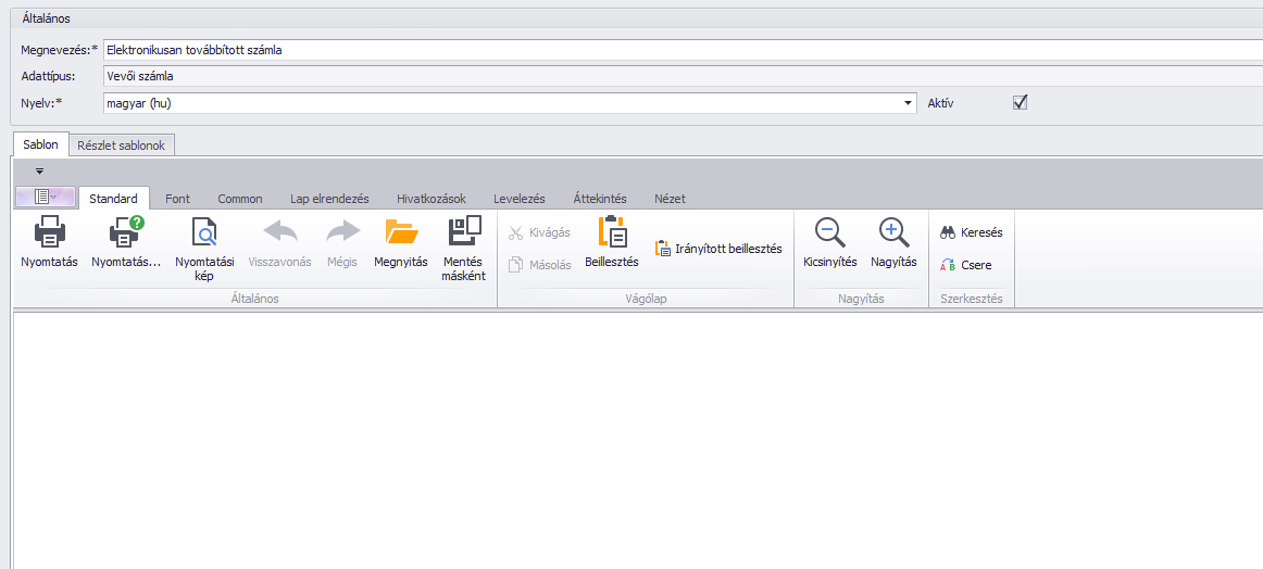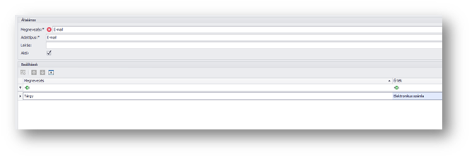 | Aktív: | I/N, választással meghatározható, hogy használatban van-e a jelen e-számla típus. |