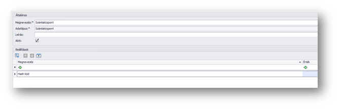 A táblázatba Számlaközpont esetén felvehető a Hash kód értéke. Docca esetén pedig az export könyvtár.