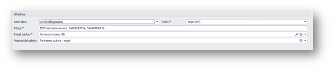Adat típus: két értékből választhatunk, kereskedelmi vevői számla és kereskedelmi vevői előlegszámla. Ez a két típus található az alap levél sablonok mellett is.