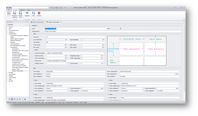 A partner címke nyomtatás menüpontban megtalálható címke nyomtatás menüpontban használható sablonokat hozhatunk létre itt egy egyszerűsített szerkesztő felületen.