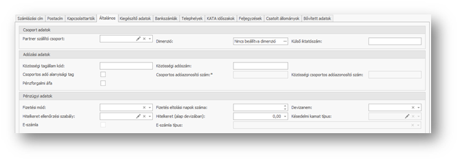 A partnerhez kapcsolódó általános adatok megadására szolgáló felület.