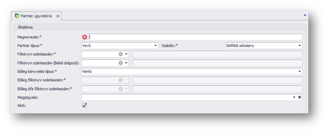 | Szabály: | A partnerünk besorolása belföldi/külföldi, vevő/szállító, adóalany/nem adóalany kategóriába. A mező kapcsolódik az Online számlázás, Adatszolgáltatás (NAV) miatti módosításokhoz. A GDPR műveletek is ez alapján döntik el, hogy magánszemély-e a partner, mert csak magánszemélyt lehet elfeledtetni, Adóalanyt nem. 2021.01.04-től kötelező jelenteni a nem adóalany és nem magánszemély részére kiállított számlák adatait is. Erről bővebben a Tippek trükkök/Online számlázás, Adatszolgáltatás (NAV)/Az online számlaküldés folyamata alatt olvashat. |