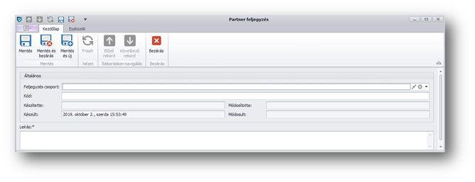 A partnerre vonatkozó feljegyzést fűzhetünk az adatlaphoz.