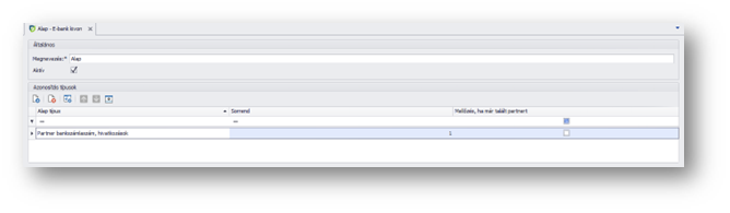 | Aktív: | I/N, Igaz érték esetén történik azonosítás az importáláskor a megadott azonosítás(i szabály)ra. |