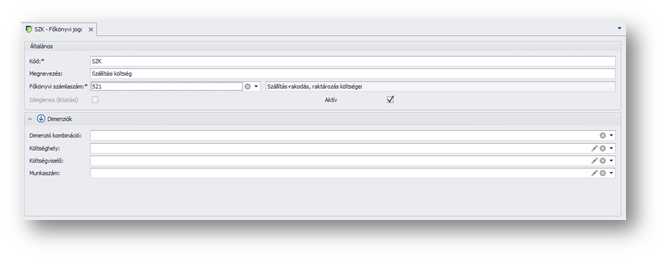 - Főkönyvi jogcím rögzítése -