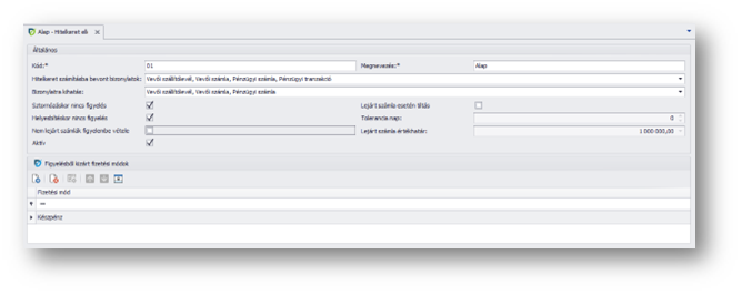 | Aktív: | A hitelkeret ellenőrzési szabály aktív-e, partnerhez hozzárendelhető. |