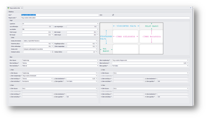 | 1. Elem terület: | A címkén megjelenő első mező értékét állíthatjuk be. |
