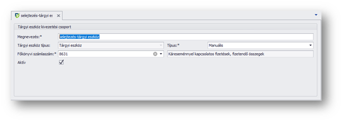 | Tárgyi eszköz típus: | 4 tárgyi eszköz típus közül választhatunk. Mindegyik típusra külön-külön kivezetési csoportot kell felvennünk. A program azokat a kivezetési csoportokat ajánlja fel a kivezetéskor, amilyen tárgyi eszköz típusba tartozik az eszköz. |