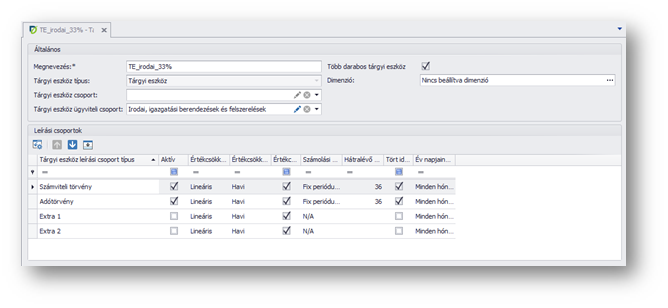 | Tárgyi eszköz típus: | Az alábbi típusok közül tudunk egyet kiválasztani: |