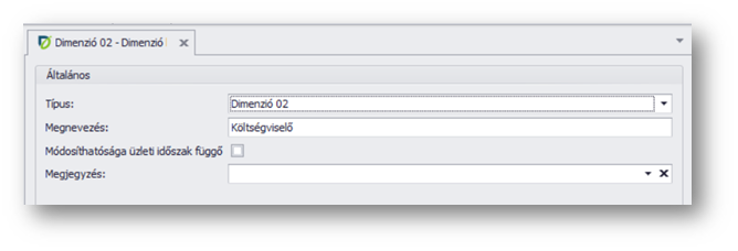 A dimenziók megnevezésének átírásához az adott dimenzió soron dupla kattintás szükséges, majd a megnevezés mezőben kell megadni a használni kívánt nevet. Elnevezhetjük a dimenziókat többek között Költséghelynek, Költségviselőnek, stb. A módosított megnevezések a rendszerből való ki és visszalépés után lesznek láthatók.