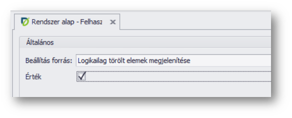 A listában dupla kattintás a Logikailag törölt elemek megjelenítése soron, majd a megnyíló ablakban az „Érték” paramétert ki kell pipálni.