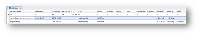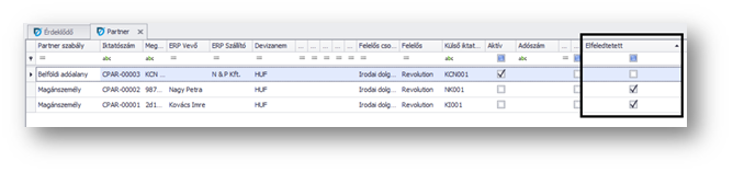 A listás áttekintő nézetben az oszlopválasztó segítségével lehetőség van megjeleníteni az "Elfeledtetett" jelölőt. Ez segít abban, hogy külön vagy egyben is le lehessen szűrni az elfeledtetett illetve a még nem elfeledtetett partnereket.