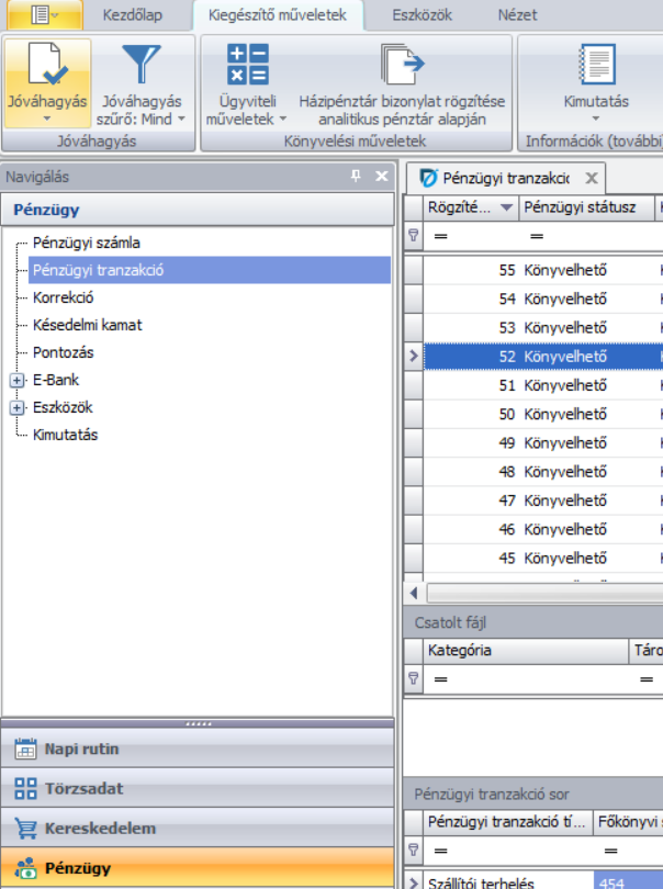 Egy tranzakcióból annyi HP bizonylat képződik ahány pénzügyi tranzakció típus / partner csoportra bonthatóak a sorok. Elsőként a növelők kerülnek rögzítésre.