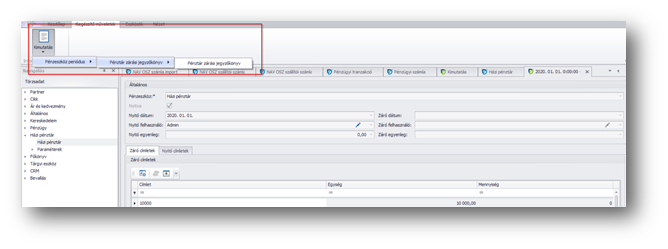 A Törzsadatok/Pénzügy/Házi pénztár menü pont listás áttekintőjében a listában kijelölve a megfelelő pénztárt, az alsó területen megjelennek a kiválasztott pénztárhoz tartozó pénztári periódusok. A lenti sorba kattintva megnézhető, hogy ki, mikor, milyen értékben nyitotta meg a pénztárban a periódust és hogy nyitáskor / záráskor milyen címletekben milyen érték volt benne. Amennyiben lezárunk egy periódust, akkor arra az időszakra a Pénztári bizonylat funkcióban nem tudunk adatot rögzíteni. Szükség esetén itt tudunk új periódust nyitni, vagy már lezárt periódust újranyitni.