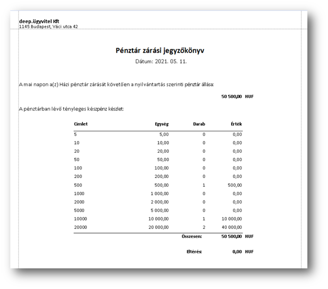 Pénztárzárás jegyzőkönyv