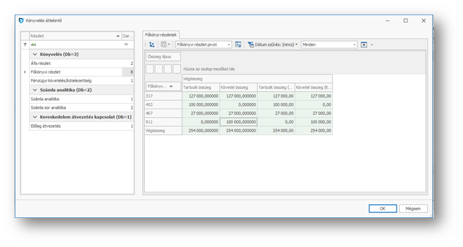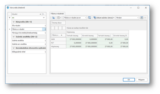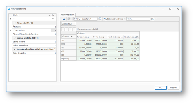 K 311 (Partner -> Partner ügyviteli kategória -> Főkönyvi számlaszám )- T 467 (áfa) (Bizonylat sor -> Áfa kód -> Fizetendő áfa számlaszám)
