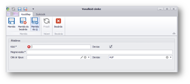 Fel kell vennünk egy új vonalkód címkét. Az adatokat értelemszerűen megadjuk.