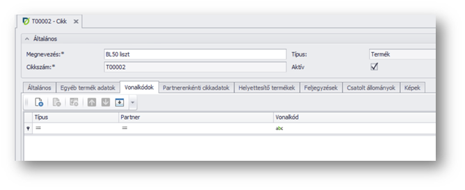 Ha esetleg a vonalkód hozzá lenne rendelve egy cikkhez, akkor itt látnánk, hogy melyik vonalkód, melyik cikkszámhoz tartozik.