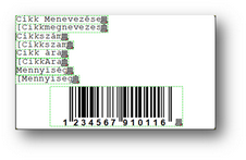 A „vonalkód címke” szerkesztésekor, a cél mezőben mindig az idézőjelek közé rakott szövegre lesz szükségünk (pl.: 1234567910116, [Cikkmegnevezes], [Cikkszam], stb…). Amelyik mezőt nem használjuk fel, azokat egyszerűen ráírja a program a címkére. Azokat a mezőket melyeket én szerettem volna majd cél mezőként megadni, már a címke szerkesztő programban szándékosan kapcsos zárójelek közé tettem, hogy egyszerűen meg tudjam különböztetni.