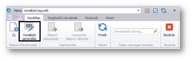 Itt a vonalkód generálása ikonnal tudjuk a generálást elindítani.