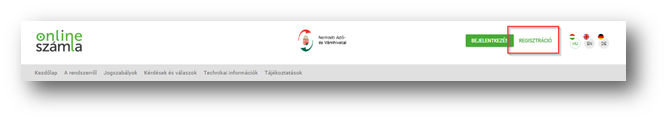 A regisztráció a https://onlineszamla.nav.gov.hu/ oldalról indulva a regisztráció panelre kattintva indítható.