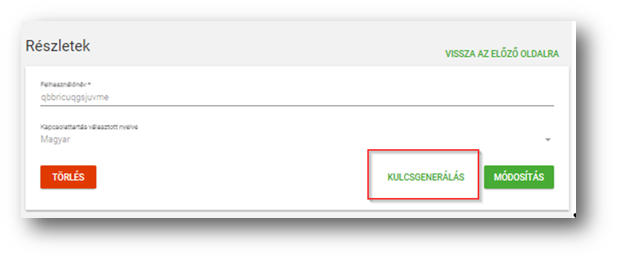 A Technikai felhasználó hozzáadását befejezve a „Mentést” követően legenerálható az XML aláírókulcs valamint az XML cserekulcs. A generált felhasználó névre, XML aláíró kulcsra és XML cserekulcsra valamint a felhasználó névhez tartozó jelszóra szükség lesz a deep.ügyvitel Számla online paramétereinek beállításához.