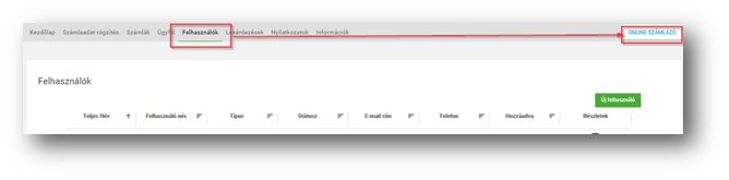 << Click to Display Table of Contents >> Online számlázás, felhasználói regisztráció |