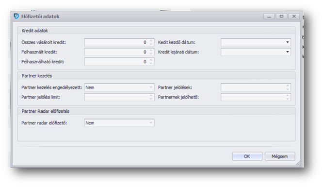 Az információs felületen partner jelölésről illetve a rendelkezésre álló kreditről kapunk további információkat.