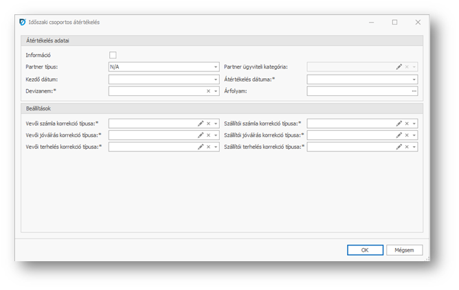 | Partner típus: | Az átértékelés lefuttatható adott partner típusra is. |