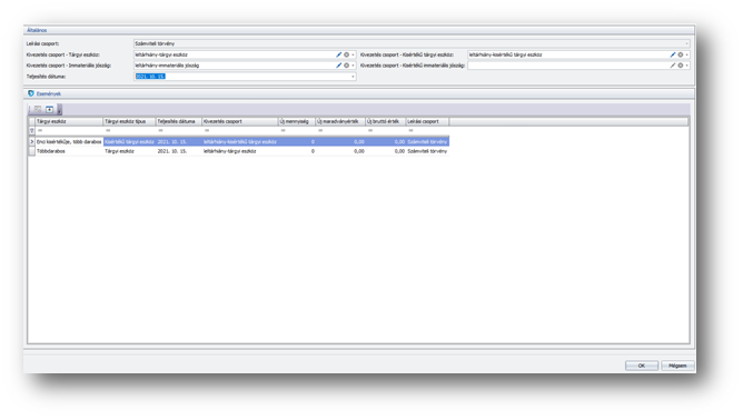 | Leírási csoport: | Előtöltődik a kiválasztott értékcsökkenési csoport értékével, nem módosítható. |