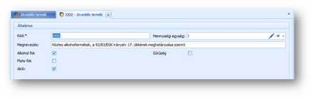 | Plato fok: | Bizonyos termékkódhoz tartozó termékek (pl. sör) esetében kötelező a Plato fok megadása. A Plato fokot a termék adatlapján van lehetőség rögzíteni. |