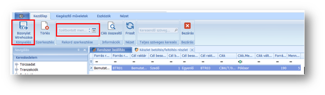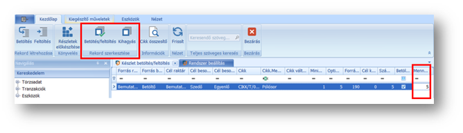 Az alacsonykészlet kezelés támogatására készült a funkció, melynél a menüsorban található Betöltés vagy Feltöltés ikonra nyomva indítható el az igény.
